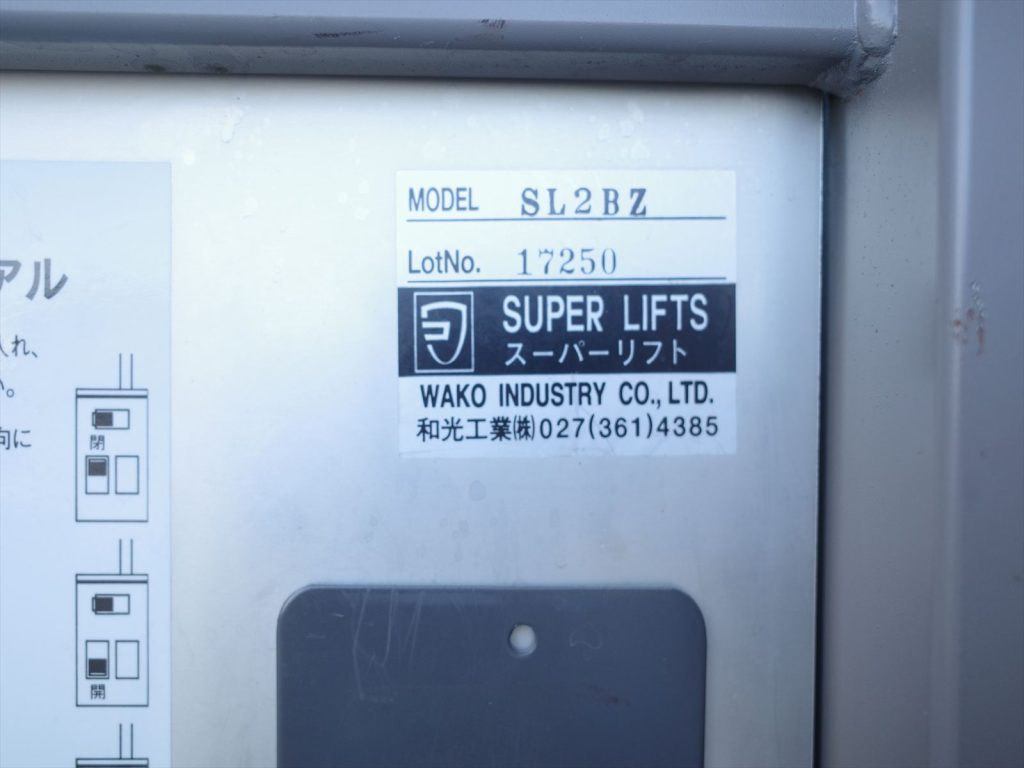 揚力250Kg ゲート寸法は長さ119cm 幅86cm