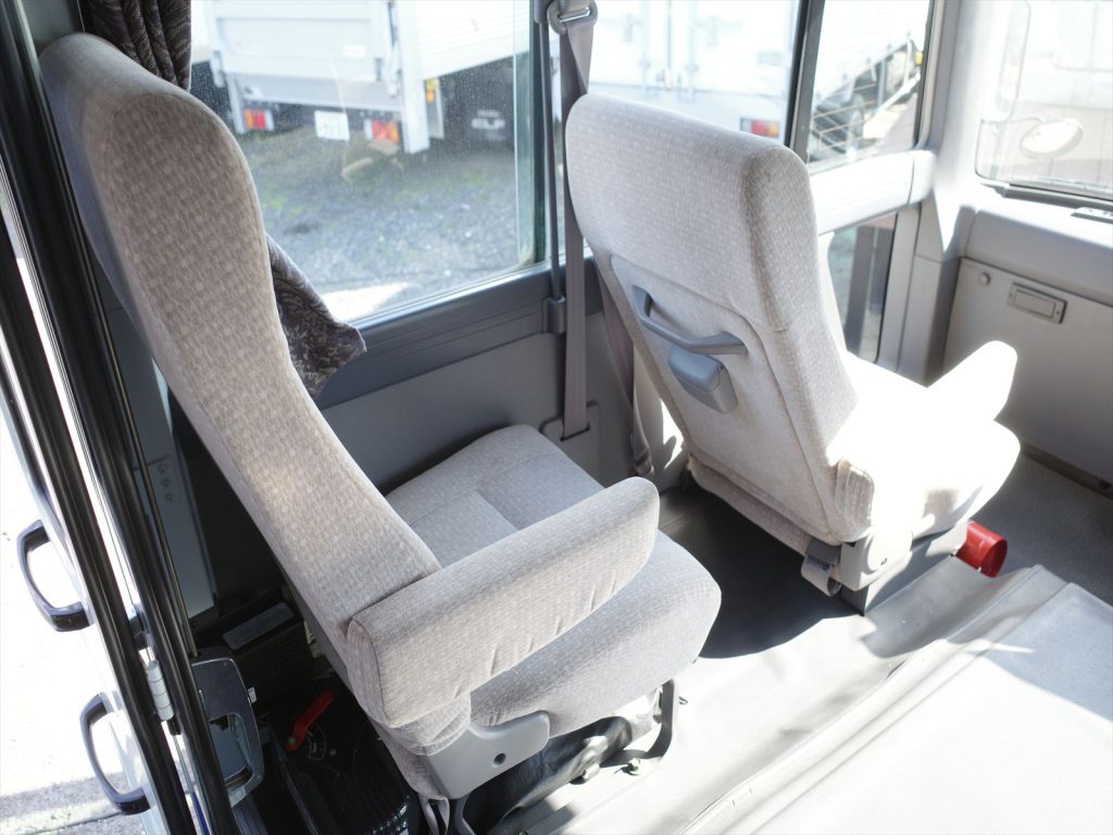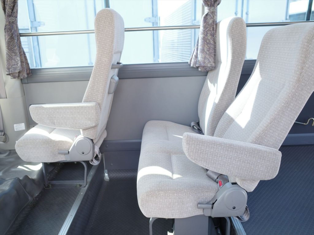 6席すべてモケットシートです!助手席の後ろ席のみリクライニングしません。