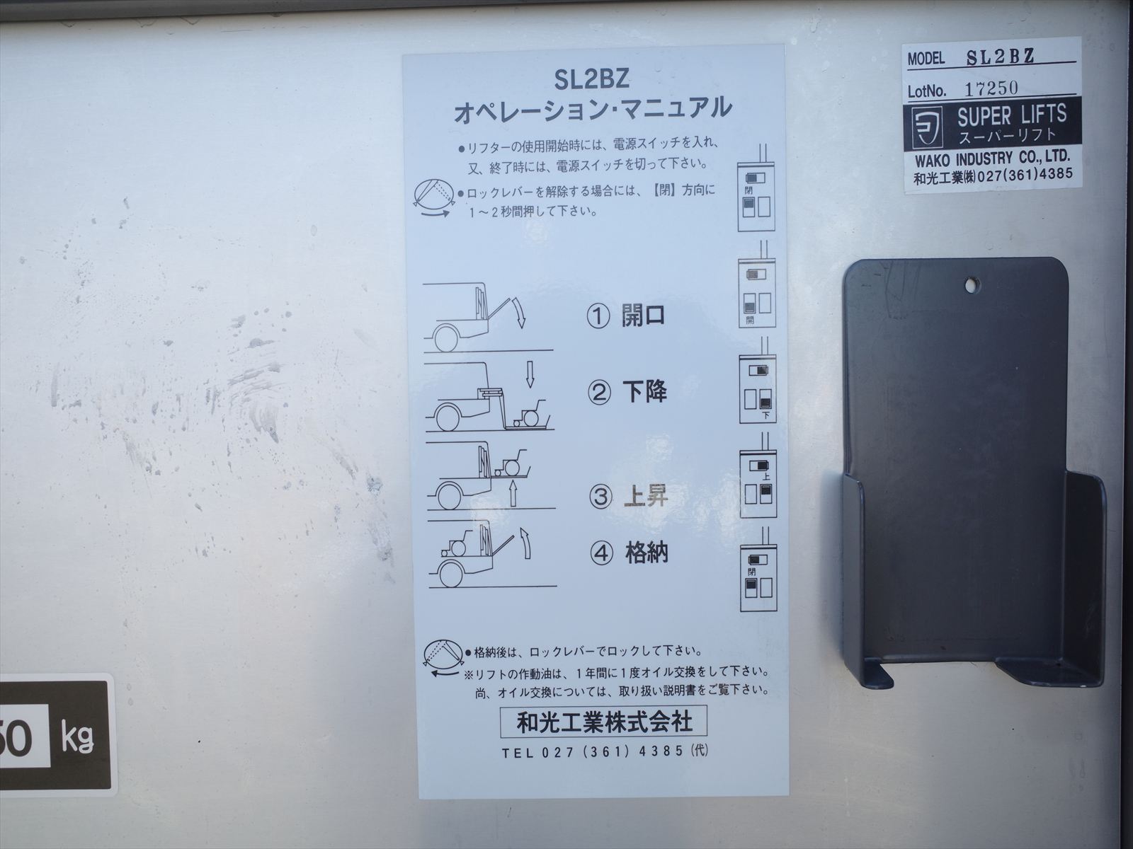 揚力250Kg ゲート寸法は長さ119cm 幅86cm