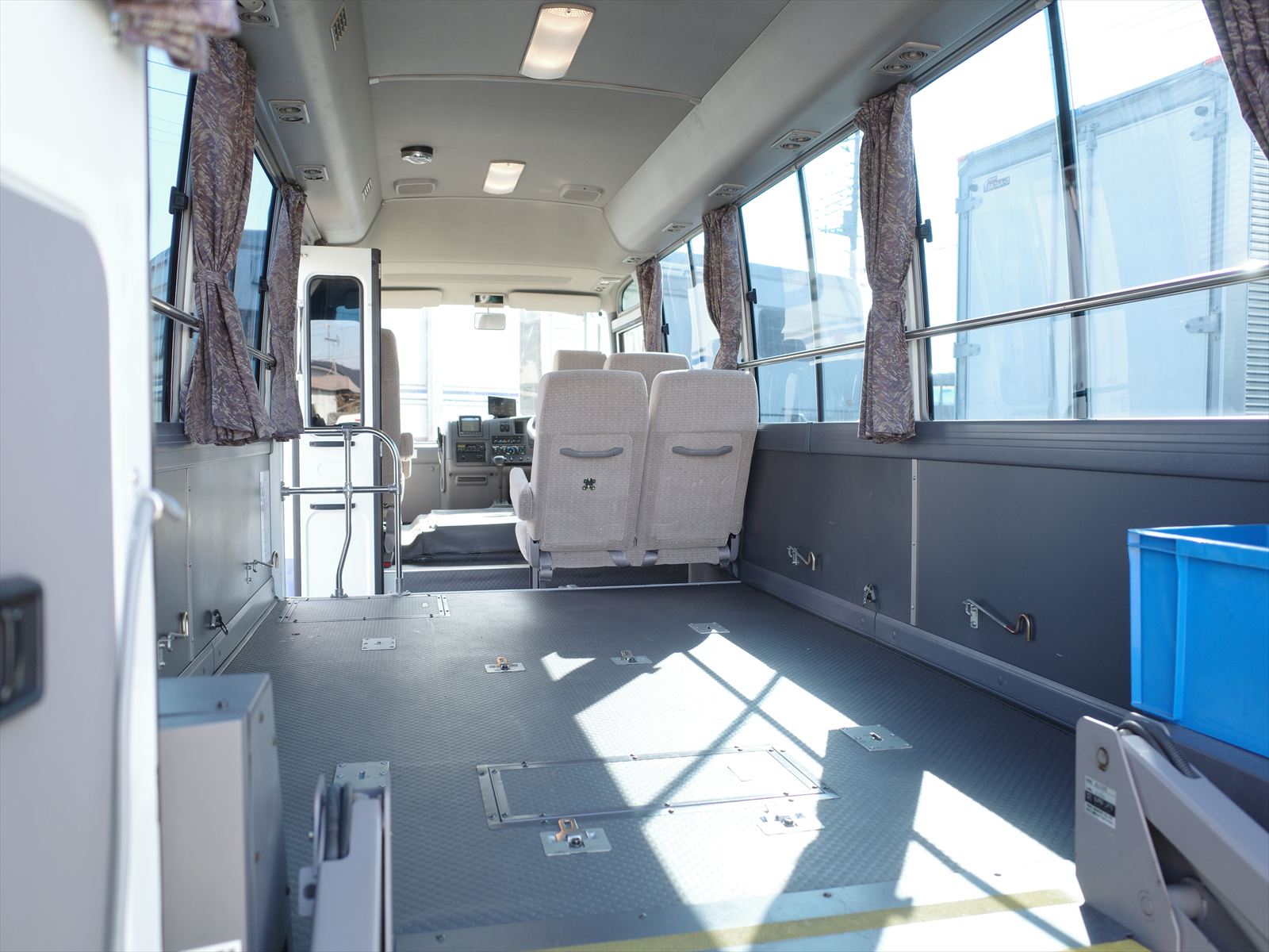 乗車定員10人車両総重量4270Kg シートは6席 車イスは4席固定できる仕様です!